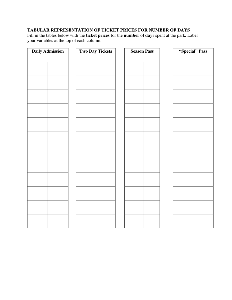 Describe when each type of ticket would be the best choice. Explain your reasoning by explaining how you used tables and graphs.