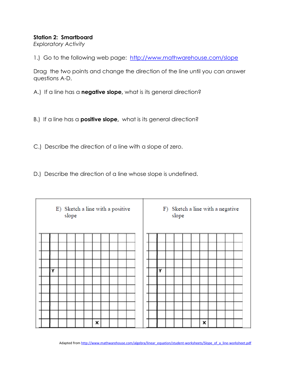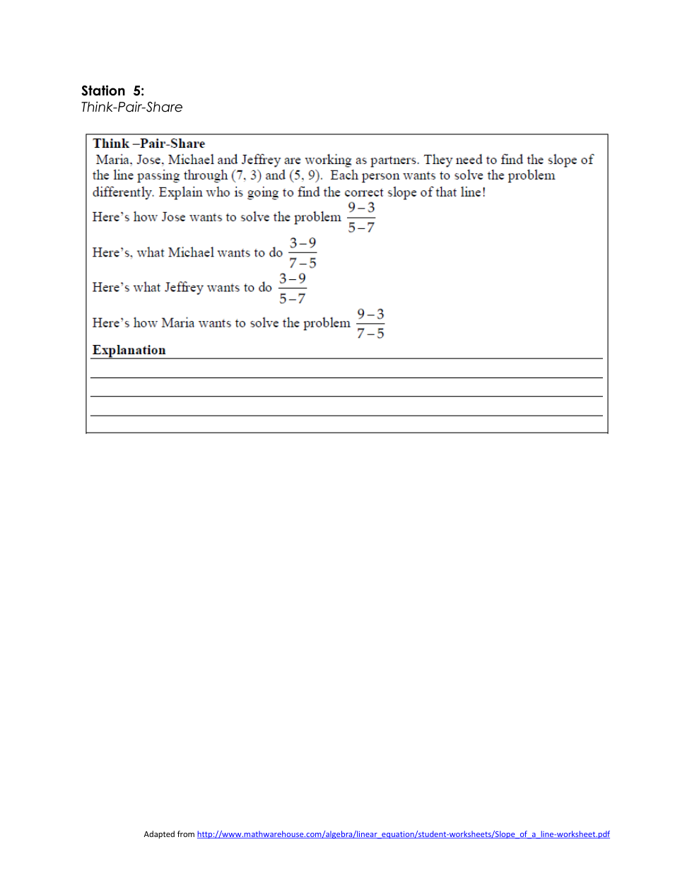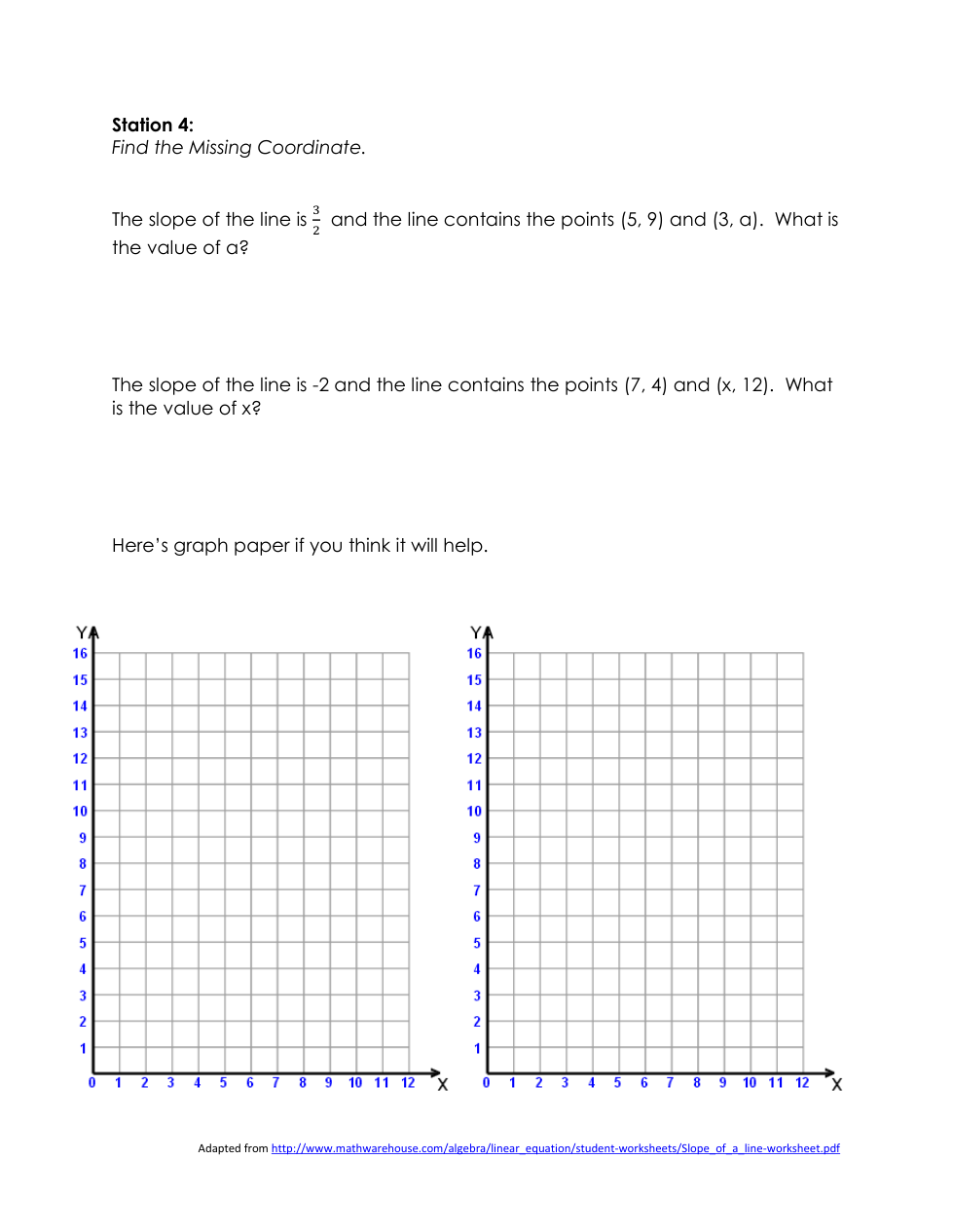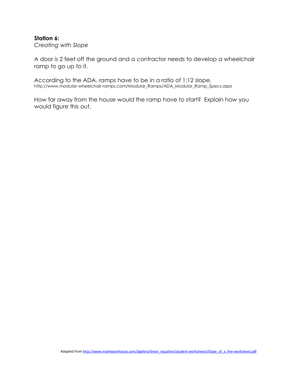 At this station, we have a ramp. DO NOT STAND ON THE RAMP. A ramp is an example in real life of how a slope is used. How can you find the slope of the ramp? Use your strategy to find the slope of our ramp.