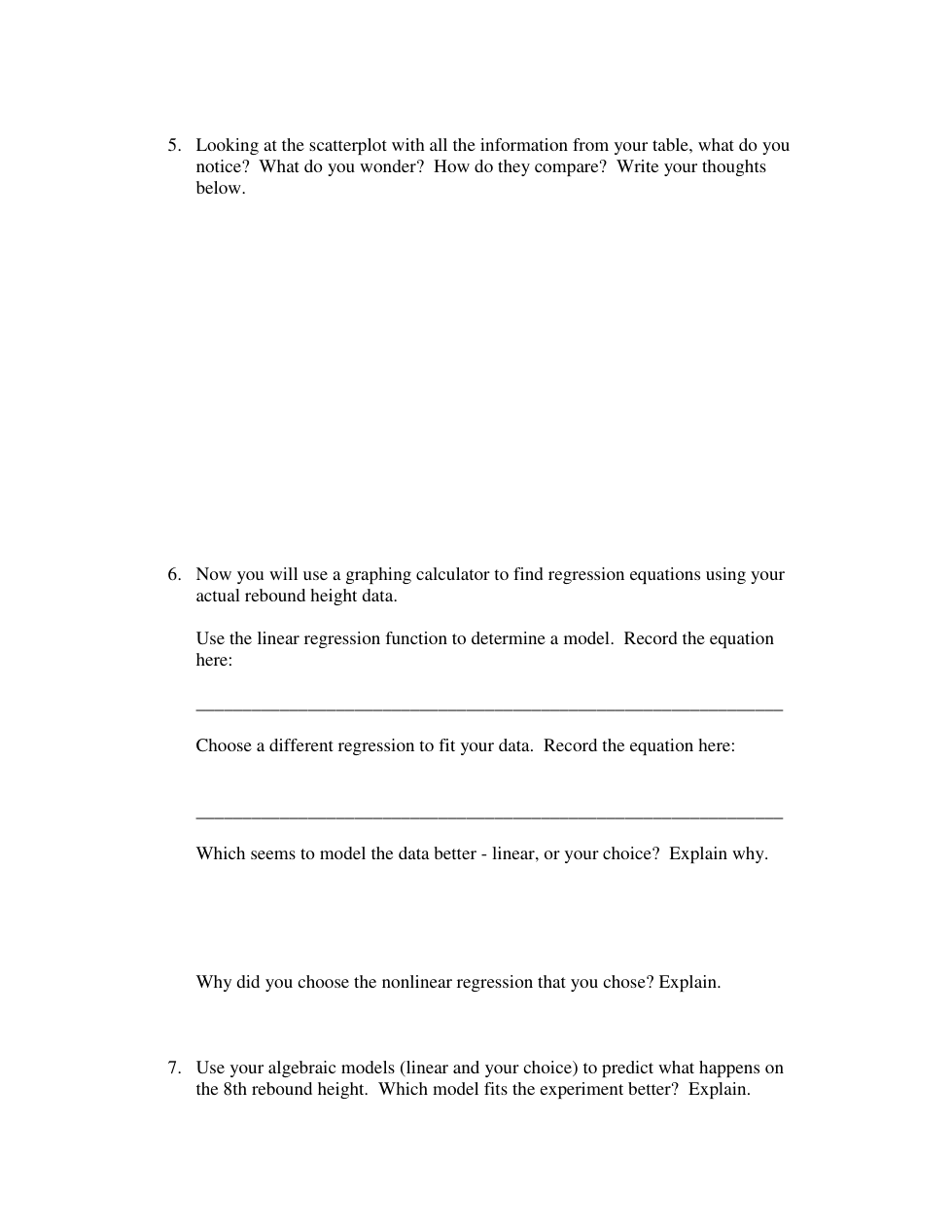 Now you will use a graphing calculator to find regression equations using your actual rebound height data.