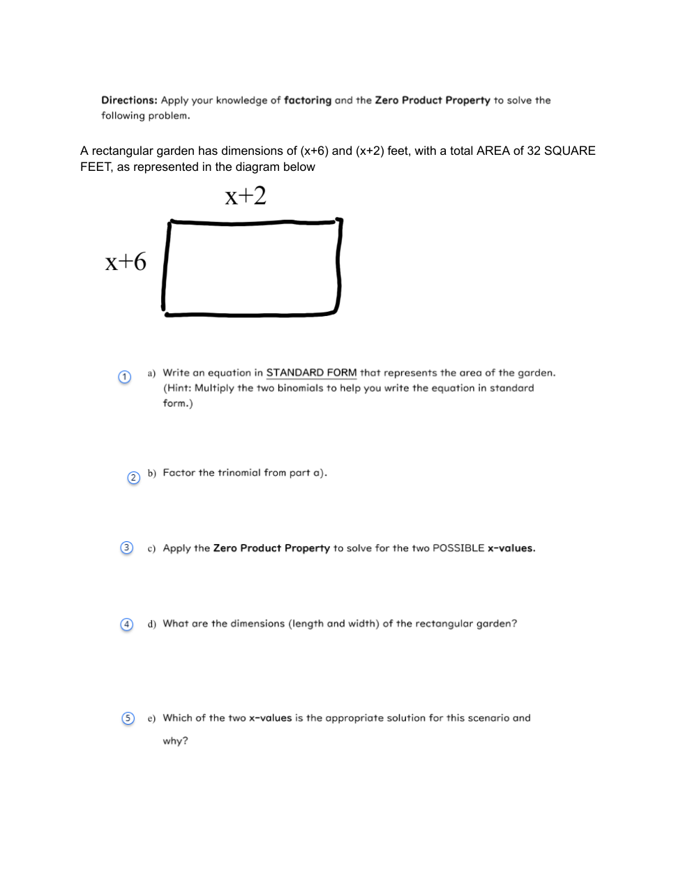 The equation in STANDARD FORM that represents the area of the rectangular garden is _______.