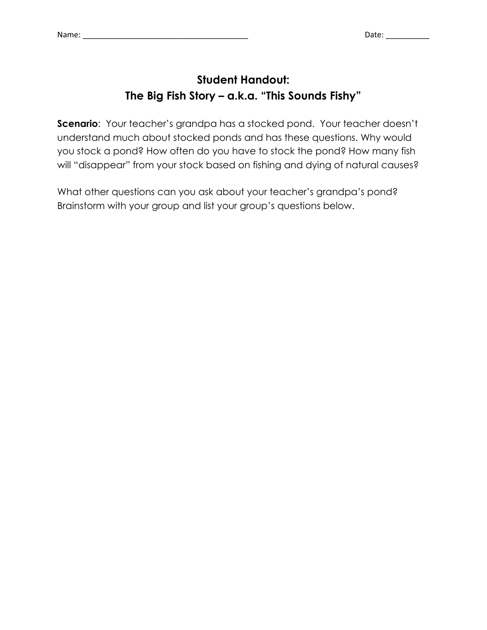 What other questions can you ask about your teacher’s grandpa’s pond? Brainstorm with your group and list your group’s questions below.