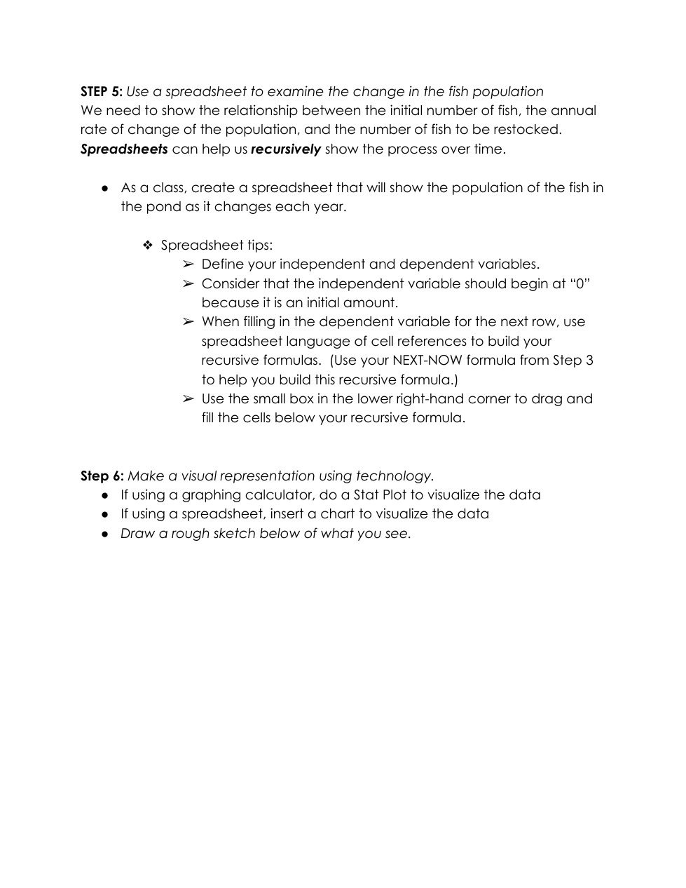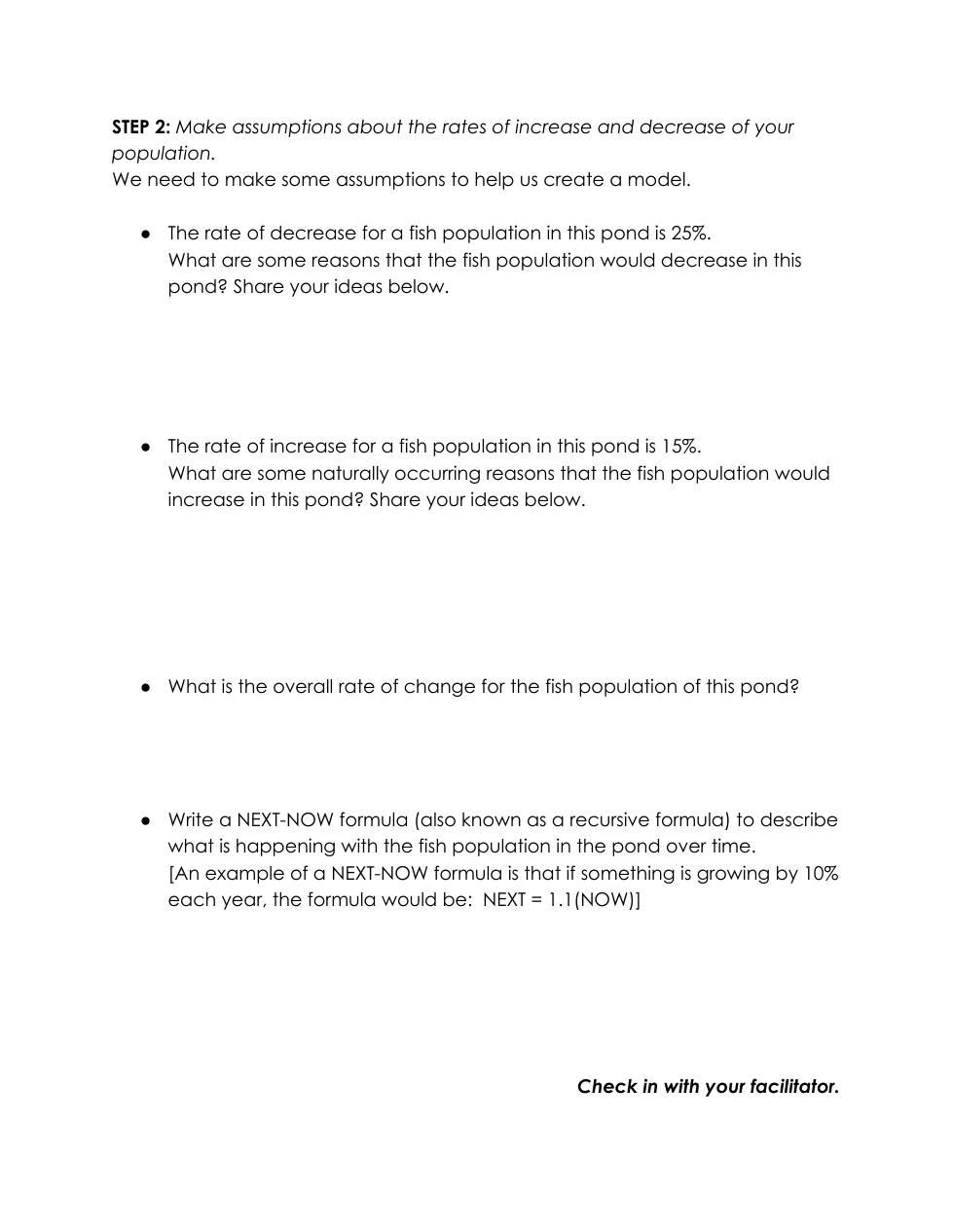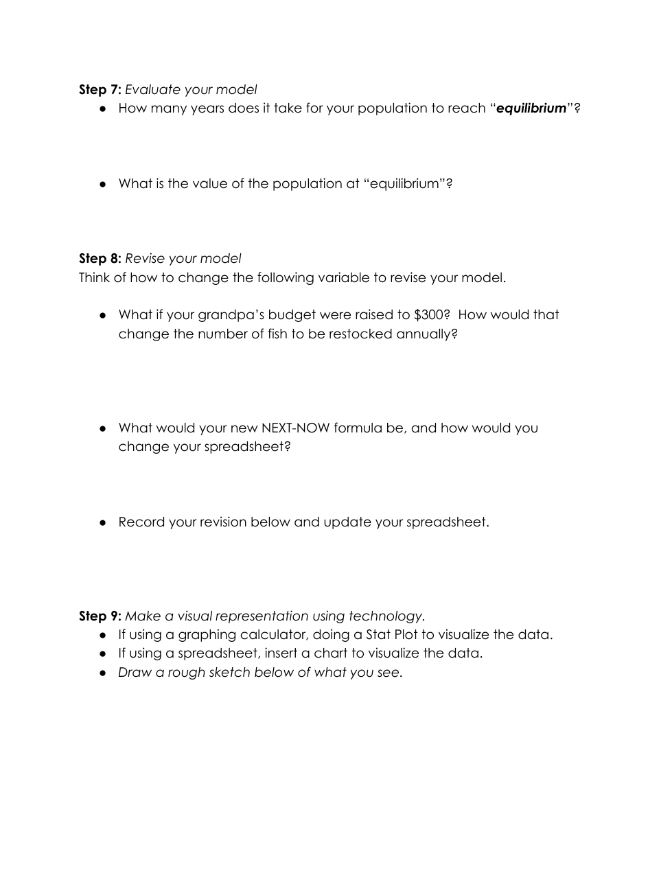 Use a spreadsheet to examine the change in the fish populationHere's a sample spreadsheet
