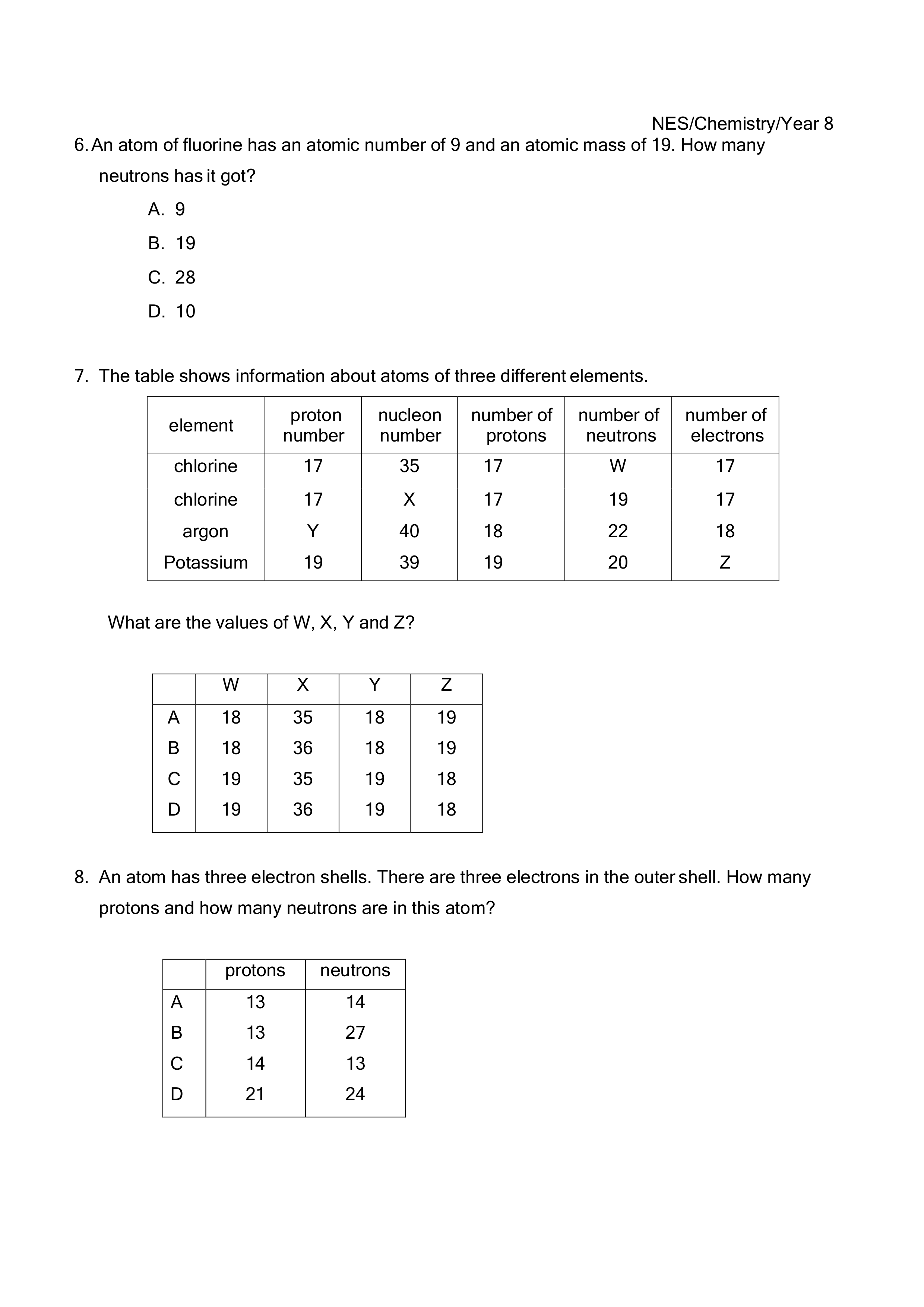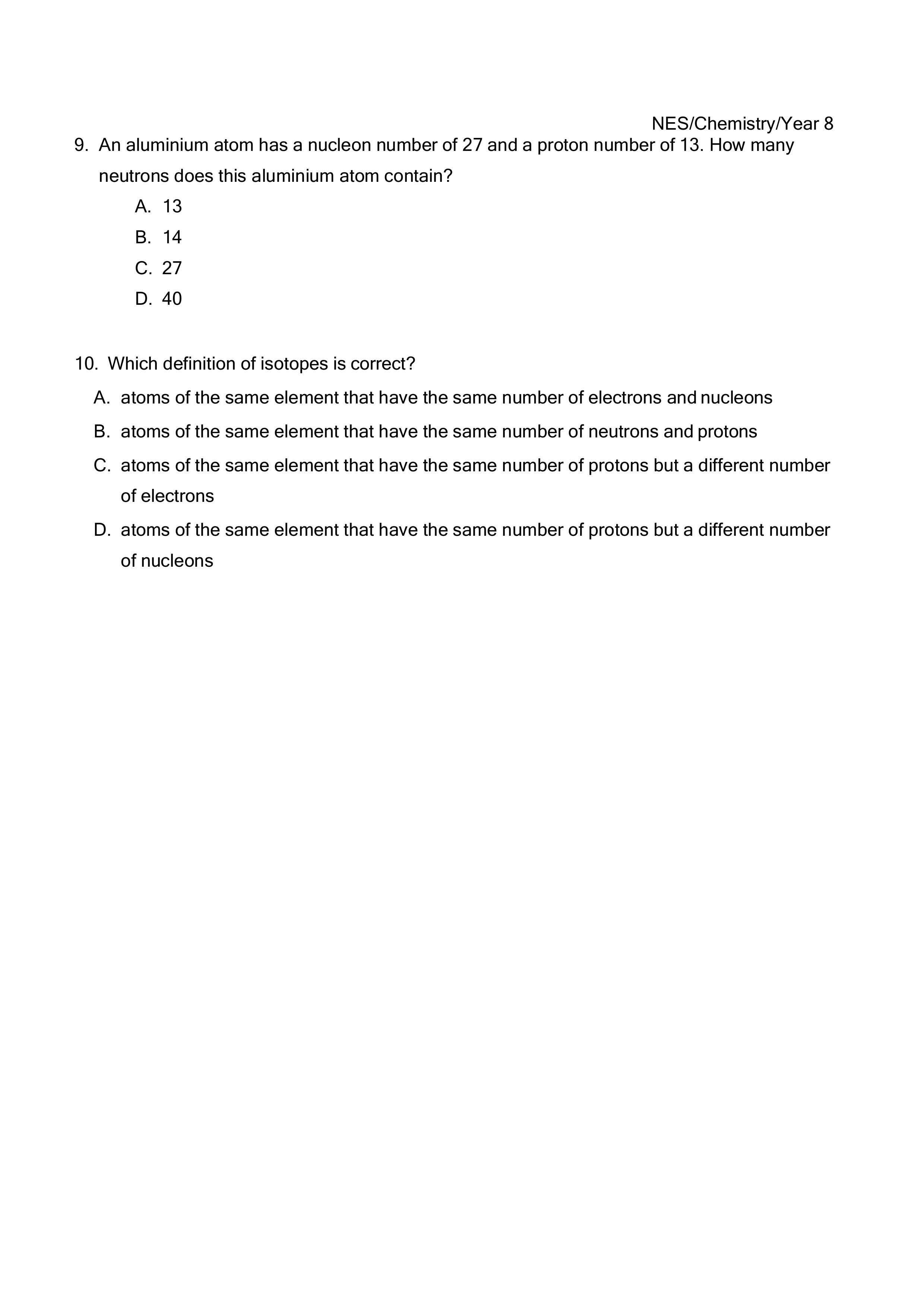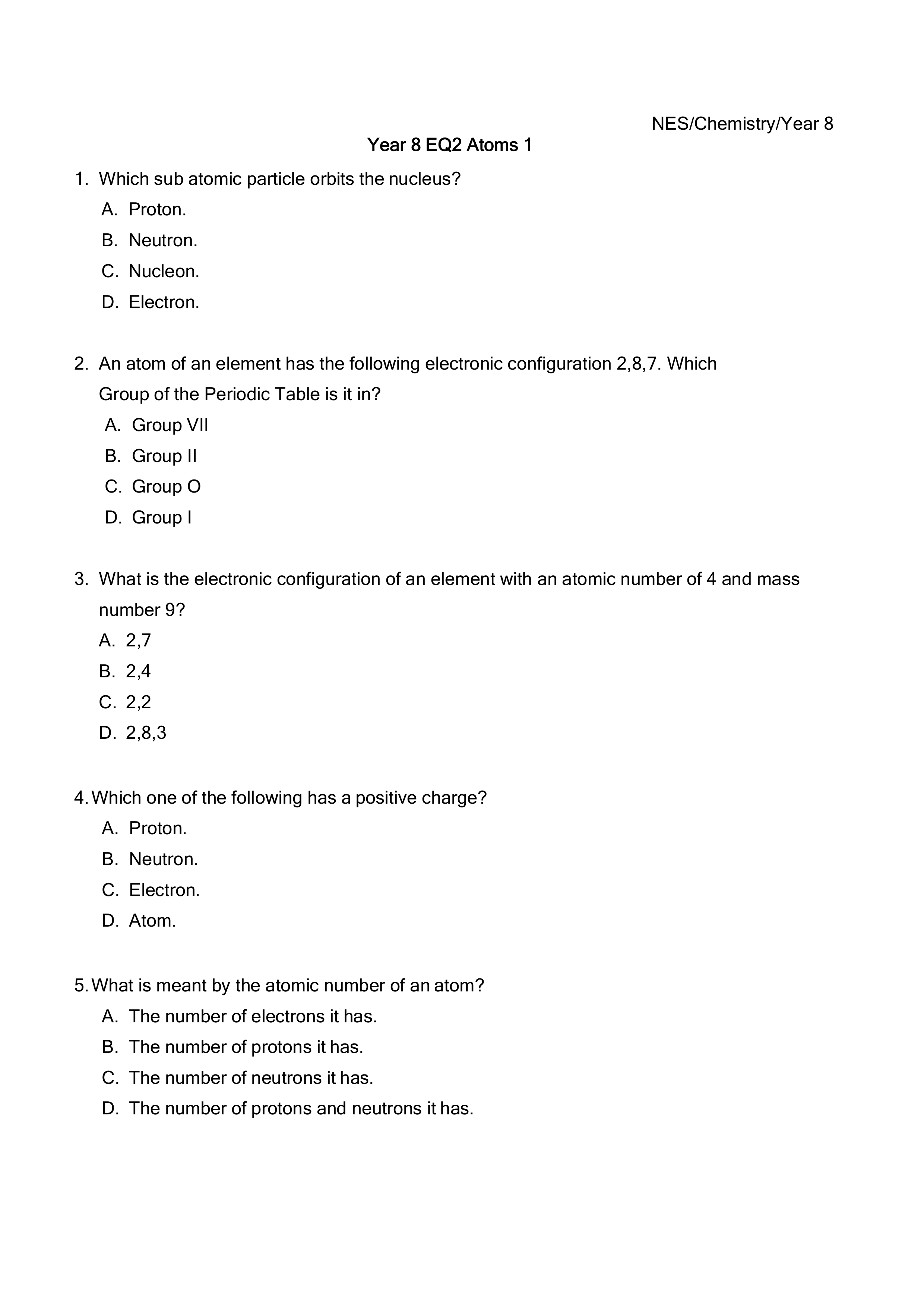 Year 8 EQ1 Atoms 1