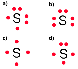 Parmi ces schémas, lequel correspond à la bonne représentation du soufre selon le modèle de Lewis ?