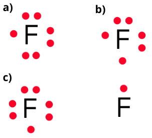 Parmi ces schémas, lequel correspond à la bonne représentation du fluor selon le modèle de Lewis ?