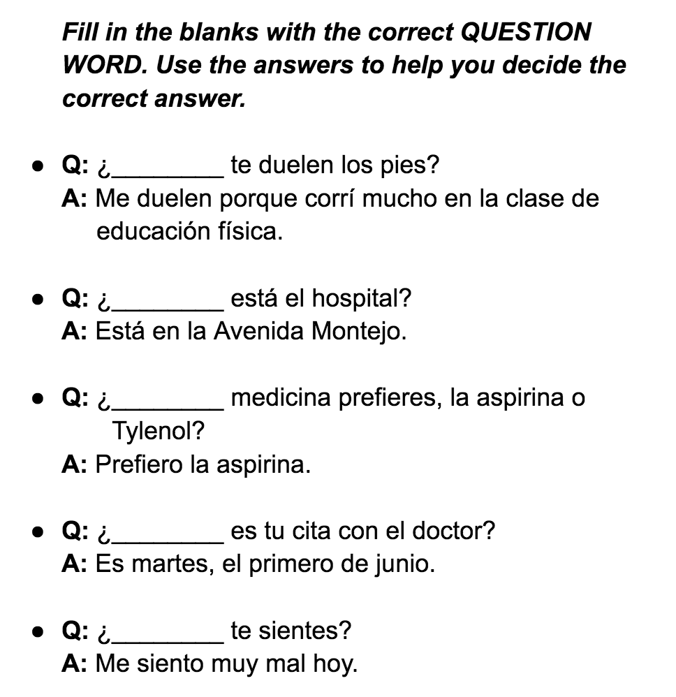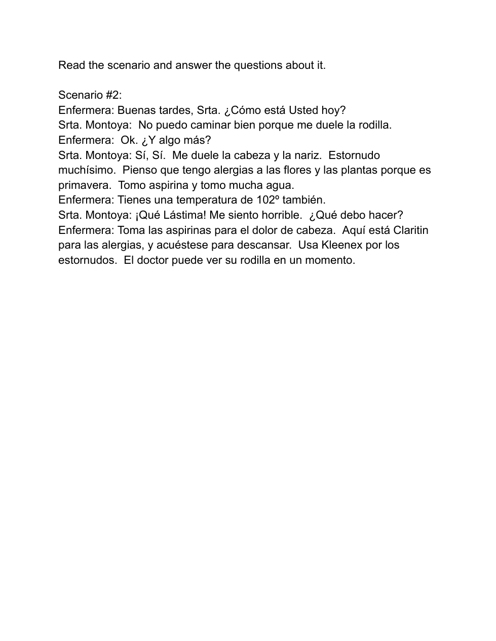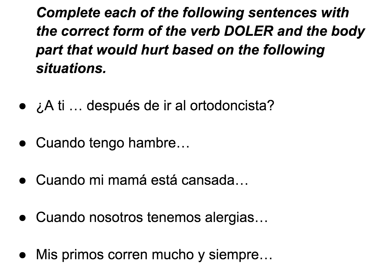 Mi amiga tiene _________. Le duele el cuerpo, está con náusea, está resfriada, y le duelen la garganta y la cabeza también.