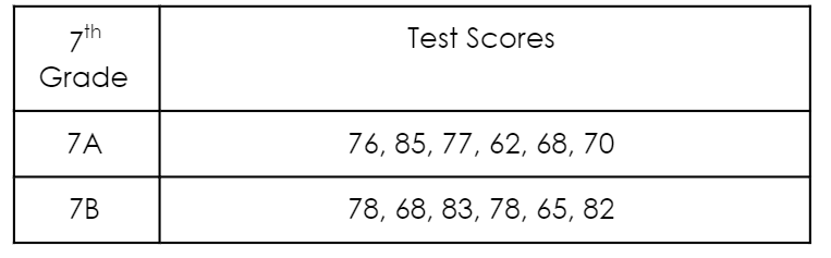 Pre-test scores for Mrs. Yates’ 7th grade classes are below.