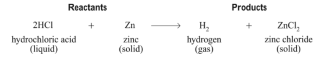 Zn(s) + 2HCl(aq) --> ZnCl2(aq) + H2(g)