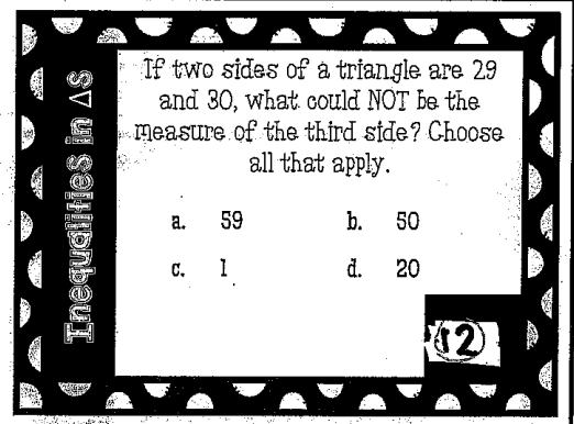 Select the answers to your 12 cards here, show work in the whiteboard and work with the partner assigned to you.