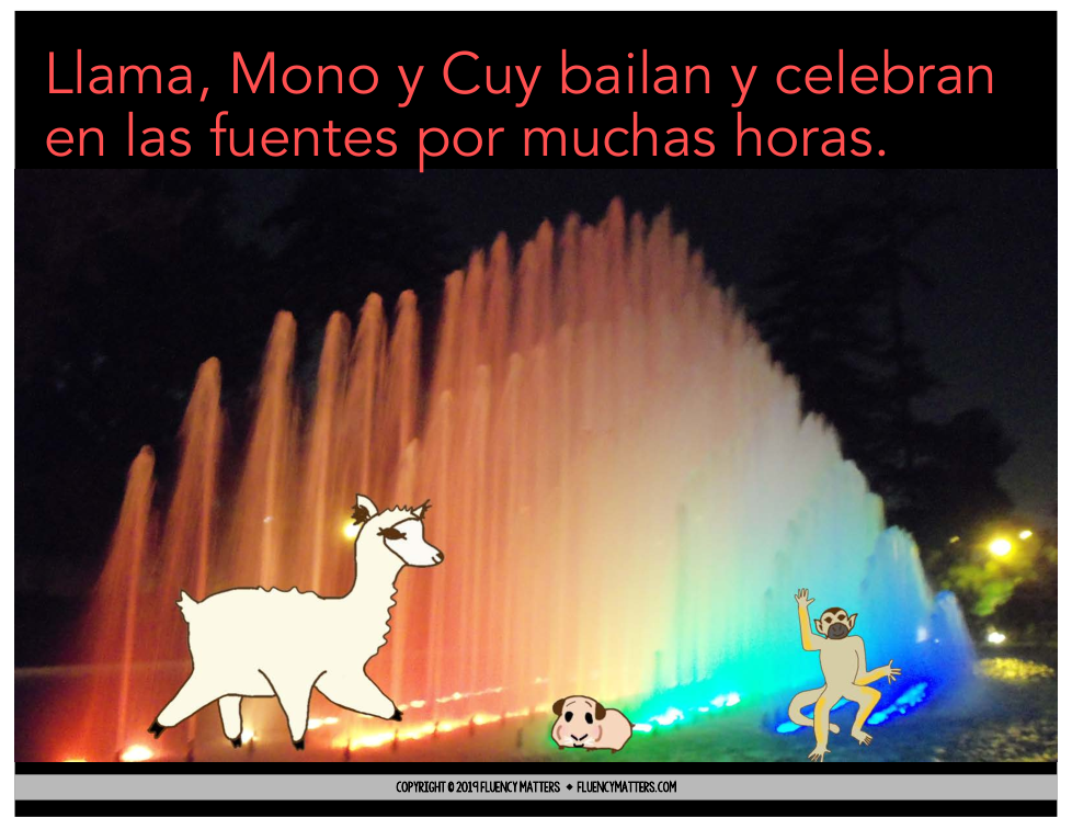 Write down 4 PLACES in Spanish that the LLAMA dances.