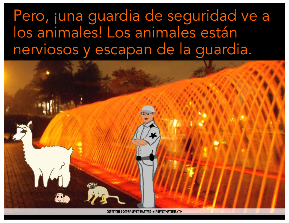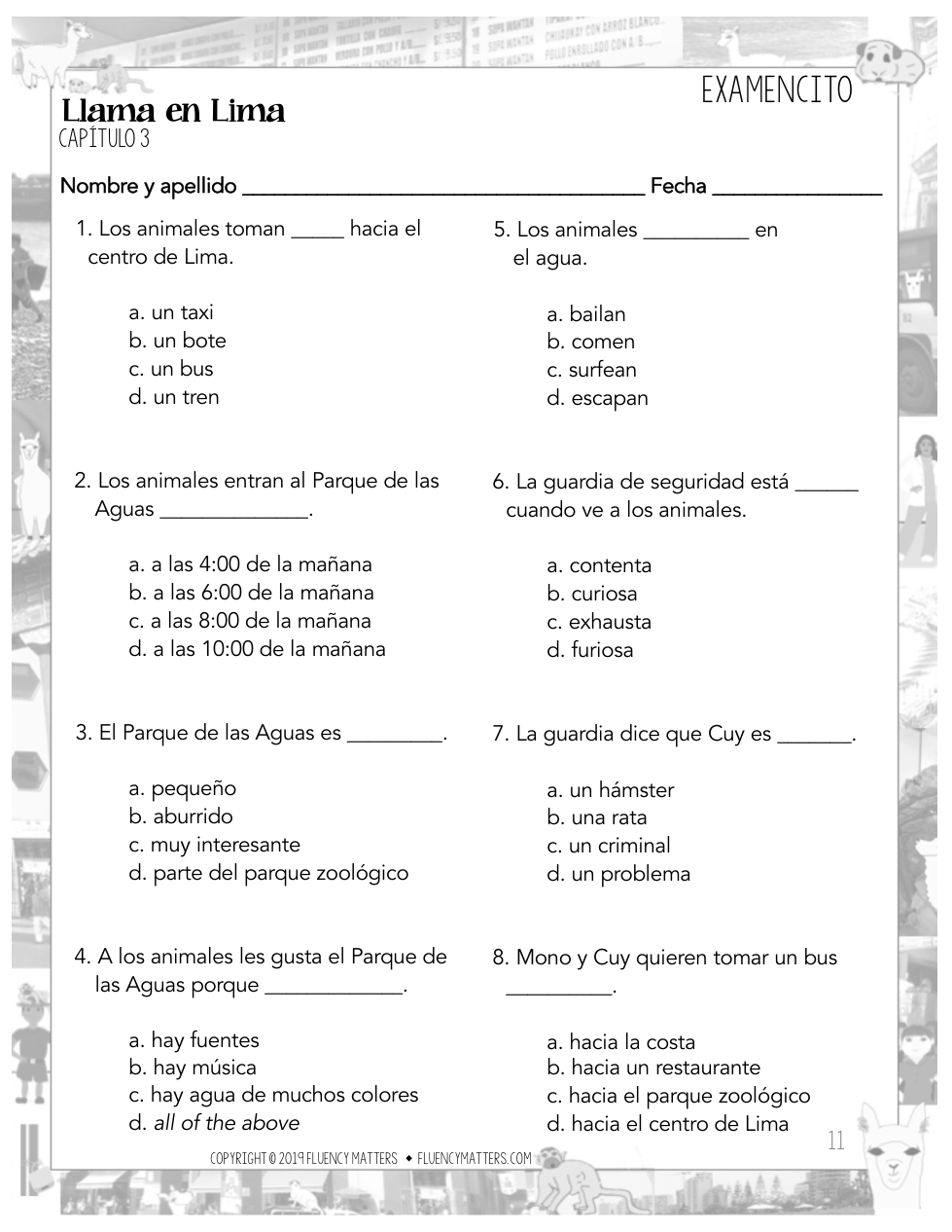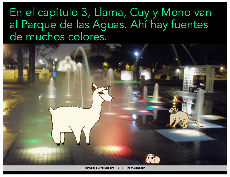 Ilustrate A scene from Chapter 4: Include LLAMA, MONO y CUY