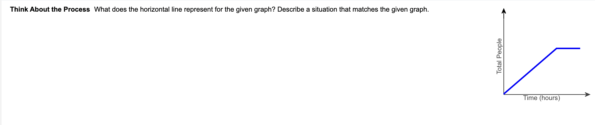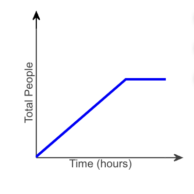 The horizontal line represents that after a certain time the total number of people remains constant.
