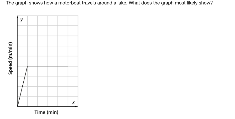 The boat steadily increases its speed for 10 minutes and then travels at a constant speed.