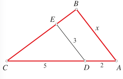 (UZV) U trokutu ABC povučena je paralela DE sa stranicom AB. Izračunaj nepoznatu duljinu x ako je zadano: