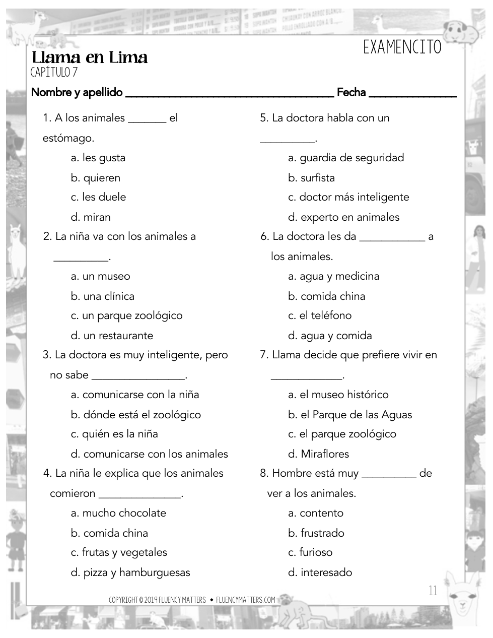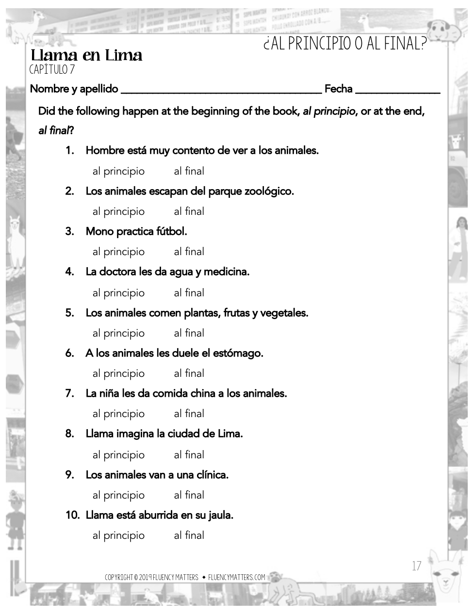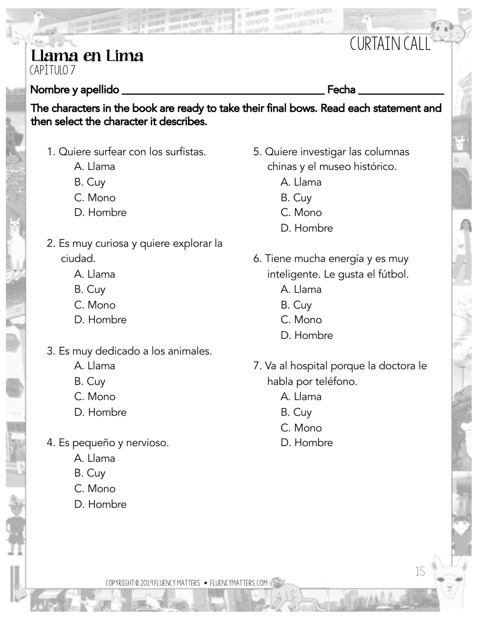 Write 3-5 sentences in SPanish about your favorite character in the Story: