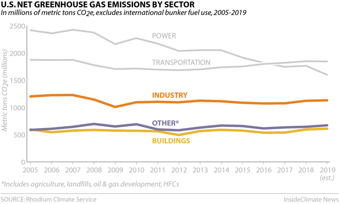 Which claim about sources of greenhouse gas emissions is BEST supported by the data patterns in the graph?