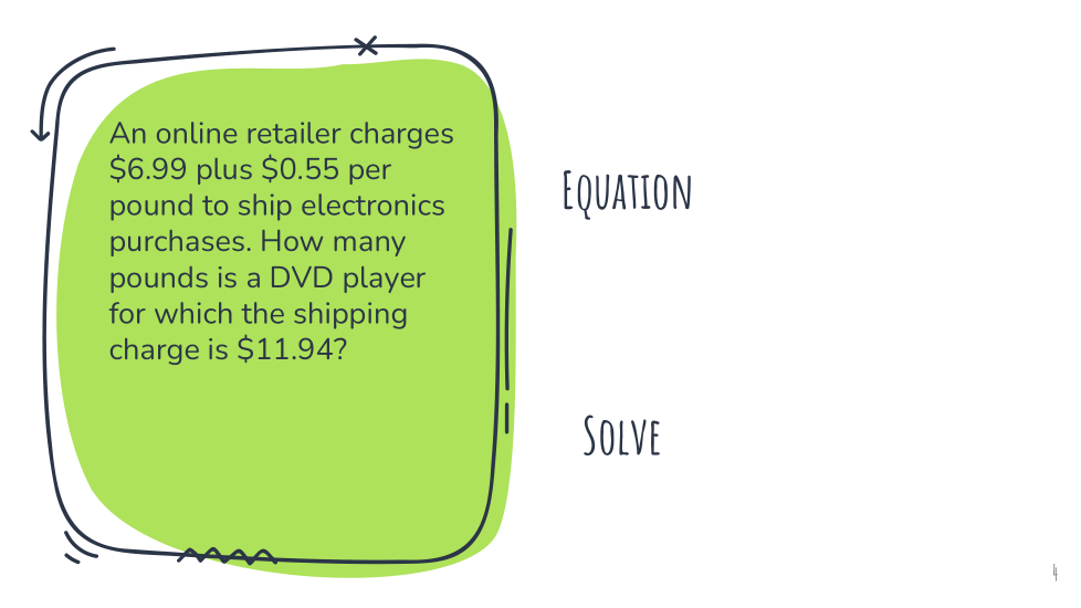 A skating rink charges a group rate of $9.00 plus a fee to rent each pair of skates. A family rents 7 pairs of skates and pays a total of $23. What is the equation that represents this situation and the cost to rent one pair of skates? __________