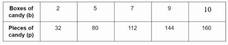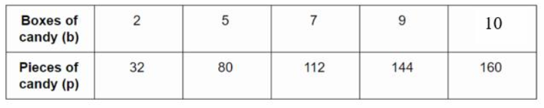 The table shows the relationship between the boxes of candy Margot sold and the pieces of candy in the boxes.