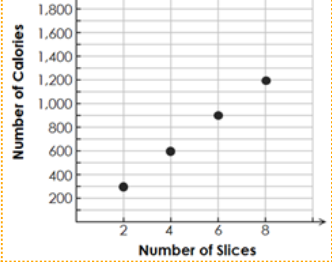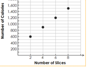 One slice of Jessica’s favorite pumpkin pie is about 300 calories. Which of the following graphs shows the relationship between the number of calories and the number of slices of Jessica’s favorite pumpkin pie?