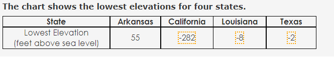 Write an expression that models the distance between the highest and the lowest elevation listed in the table.