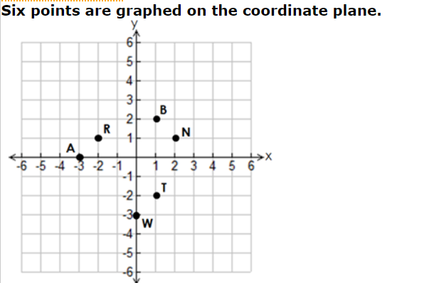 Which three points graphed on the coordinate plane show the locations of the three ordered pairs in the table?