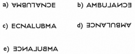 You may have seen ambulances on the street with the letters of the word AMBULANCE written on the front of them, in such a way as to appear correctly when viewed in your car's rear-view mirror. (See the figure.) How do the letters appear when you look directly at the ambulance (not through the mirror)?