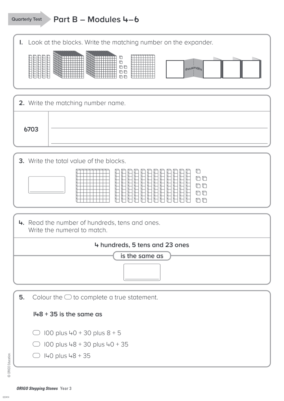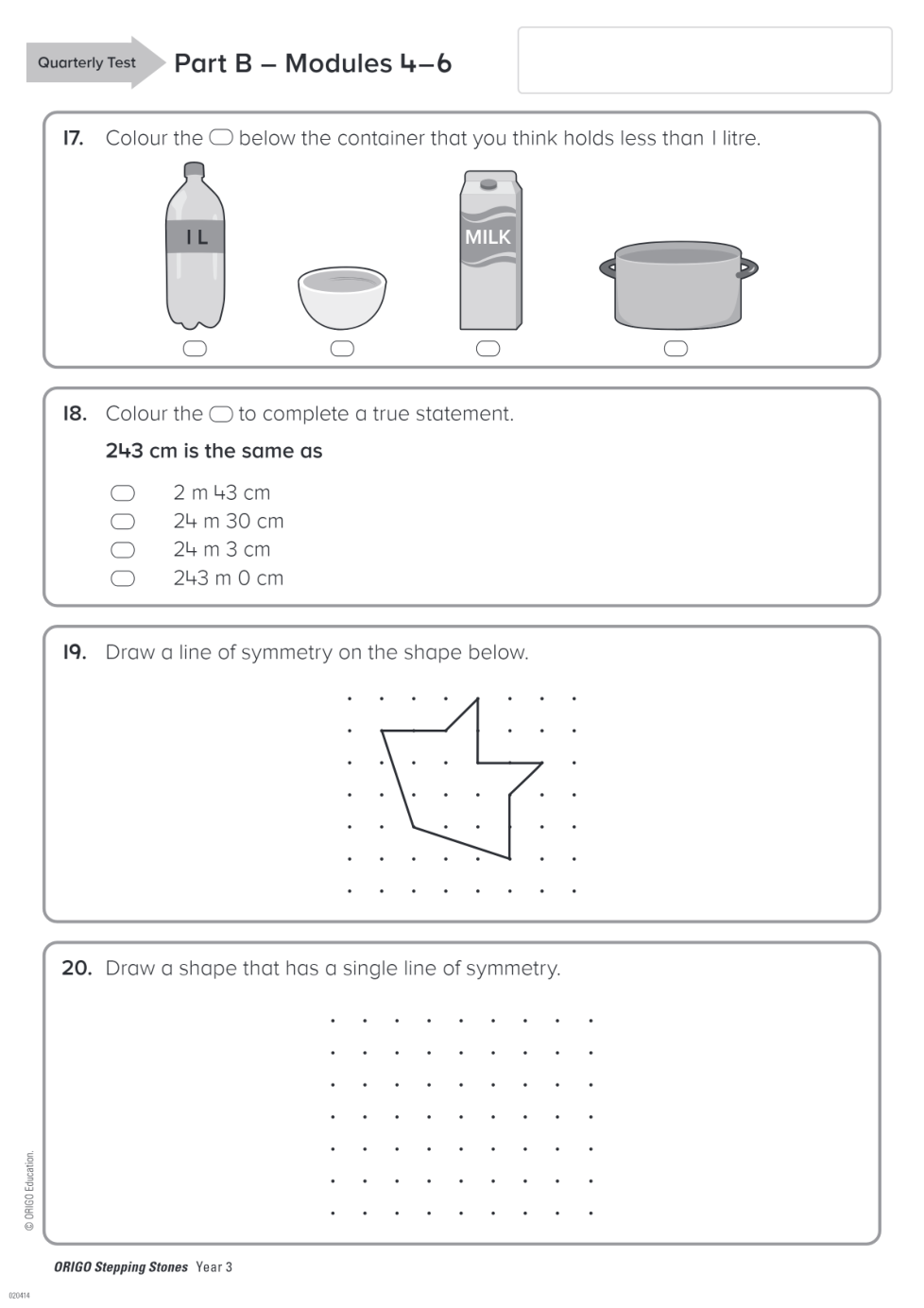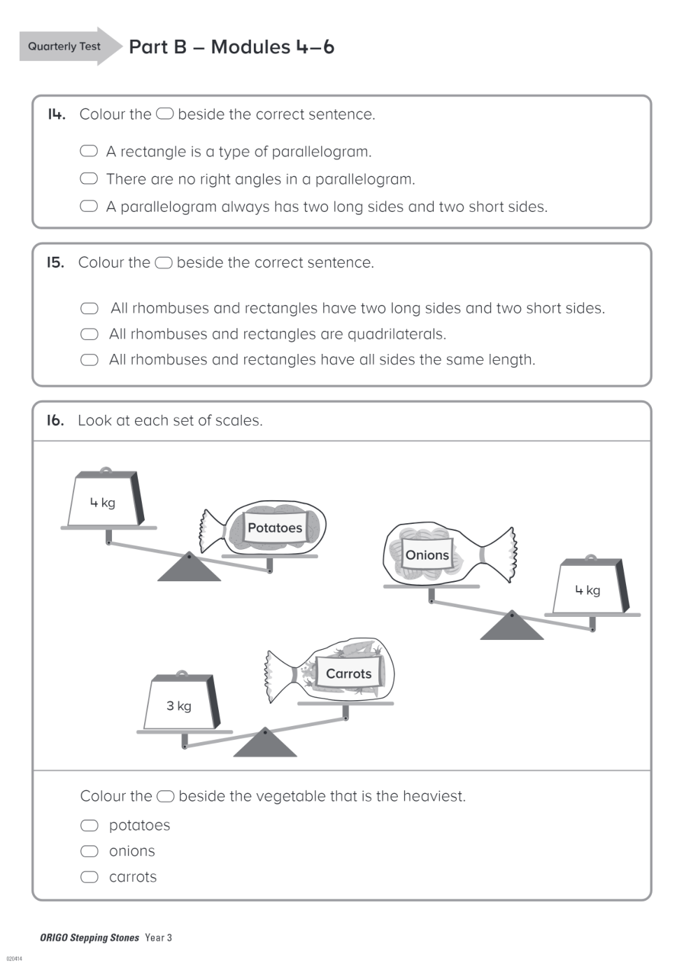Geraldton PS Year 3 Term 2 Quarterly Test