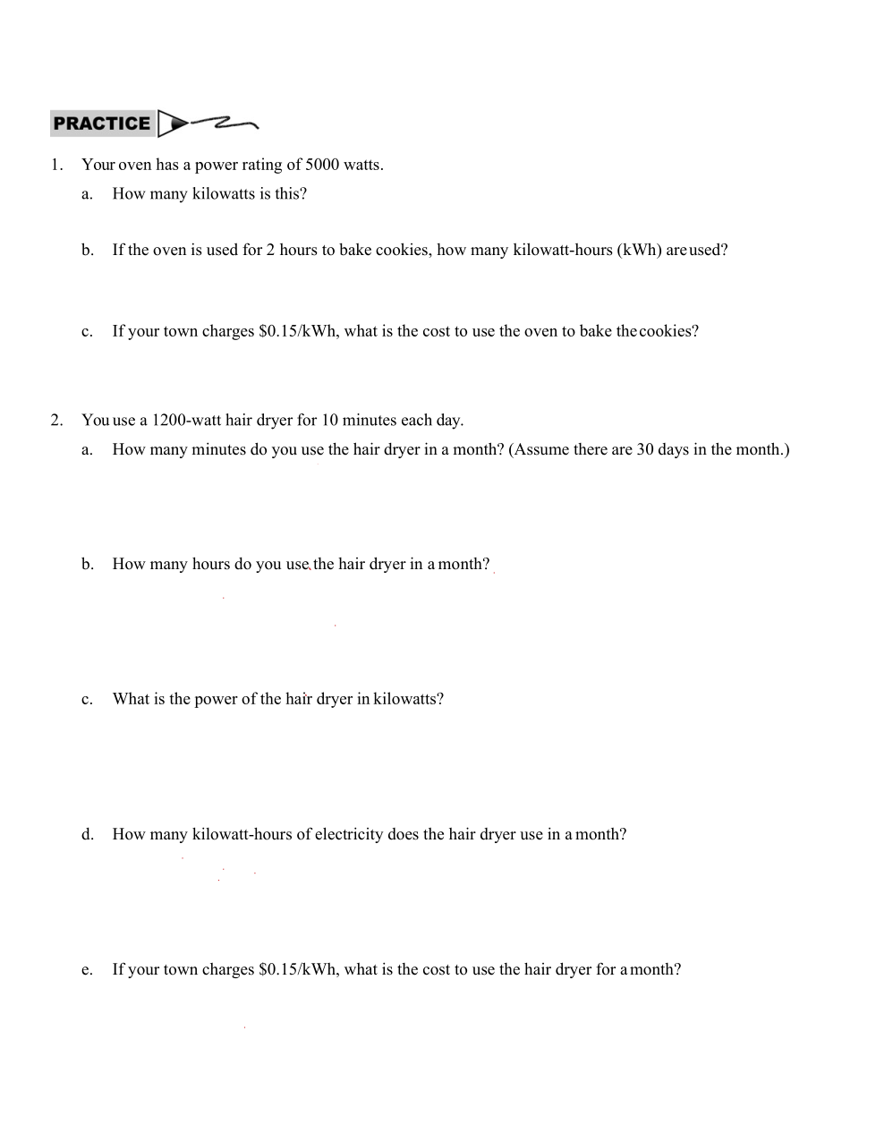If your town charges $0.15 per kWh, what is the cost to use the hair dryer for a month?