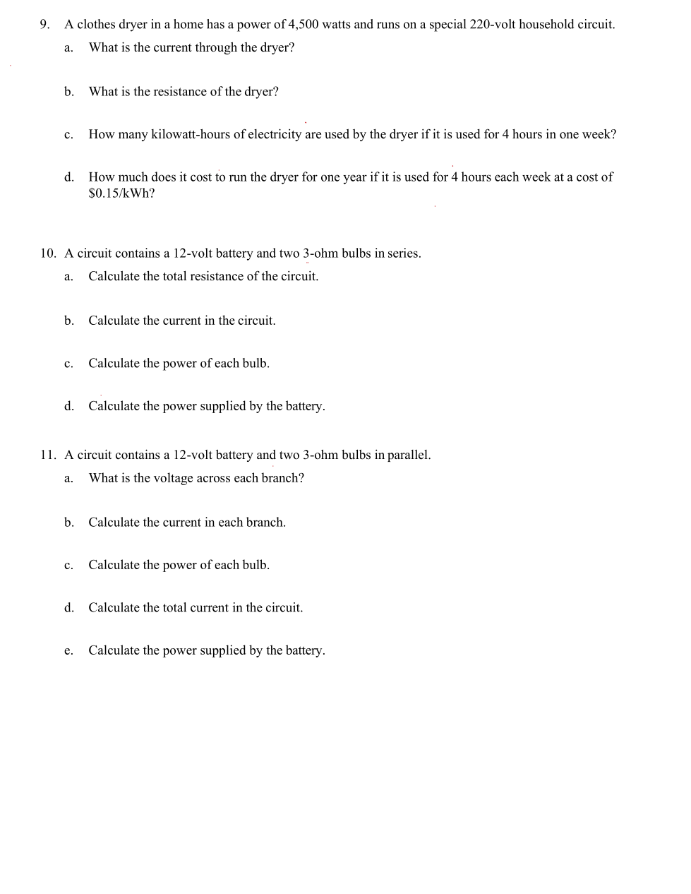 A circuit contains a 12 volt battery and two 3 ohm bulbs ind series. Calculate the total resistance of the circuit