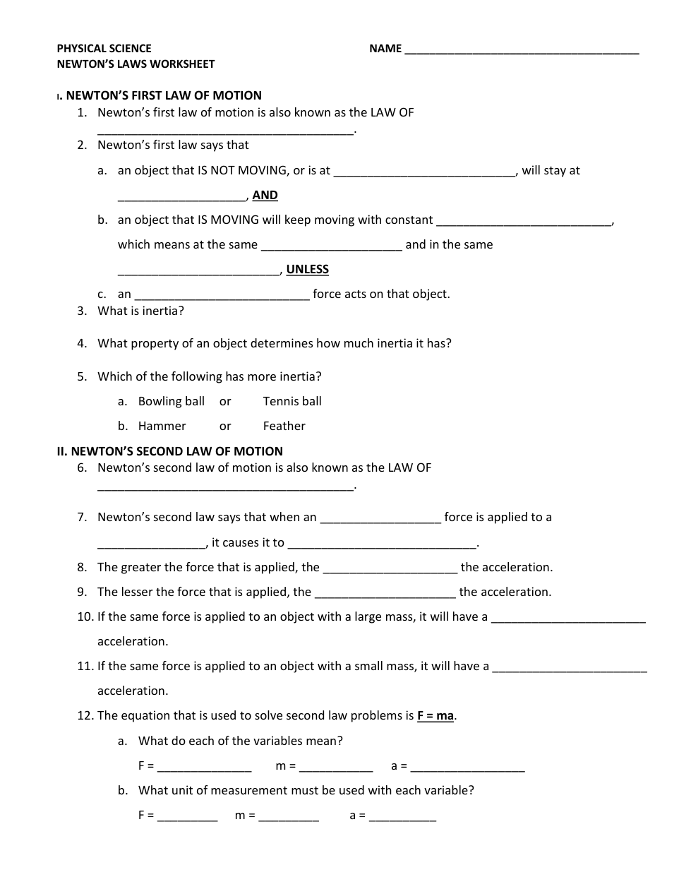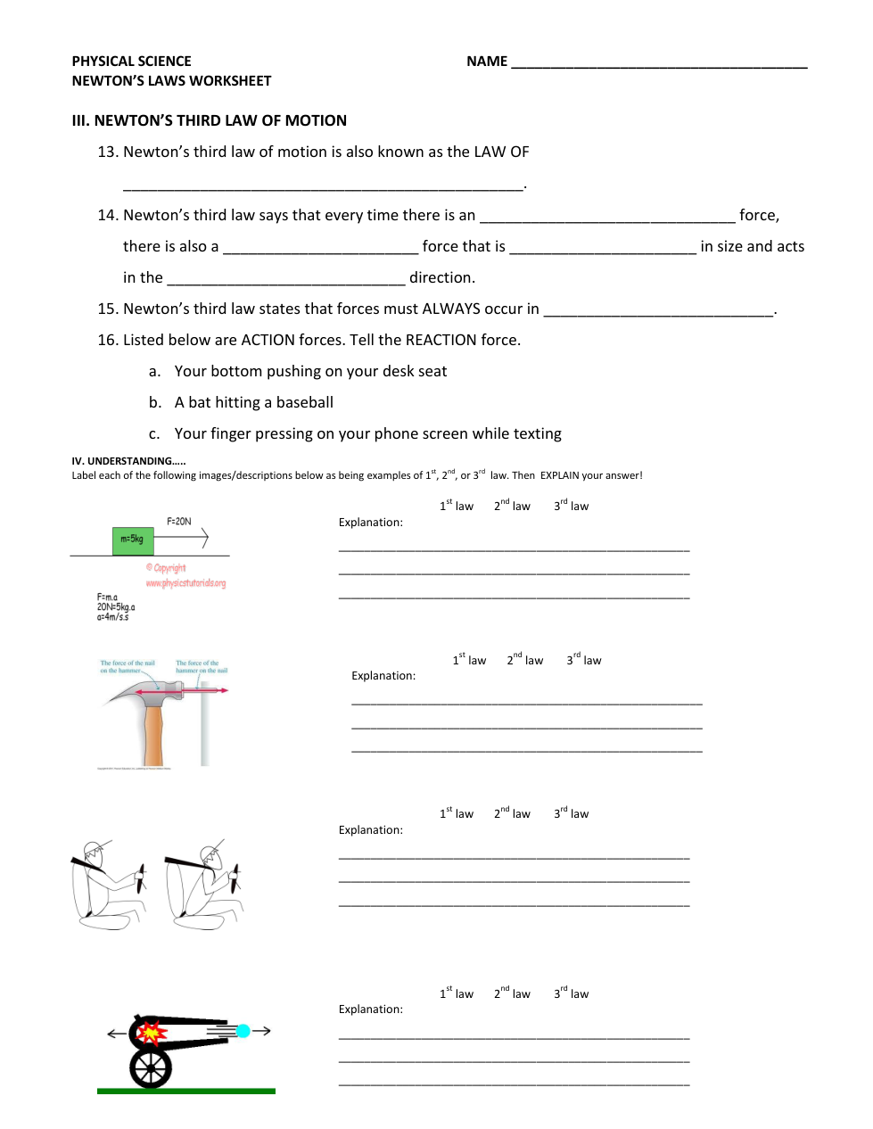 Copy of Newtons Laws Worksheet (6/7/2024)