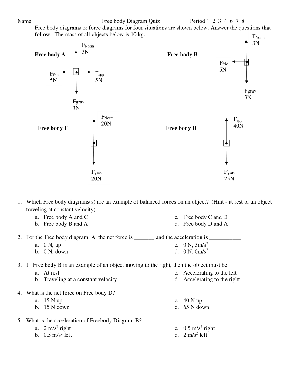 Copy of Free Body Diagram and Forces Quiz (6/7/2024)