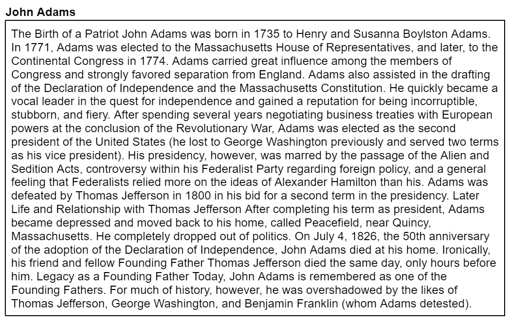 Washington | arrow_right_alt | passed the unpopular Alien and Sedition Acts |