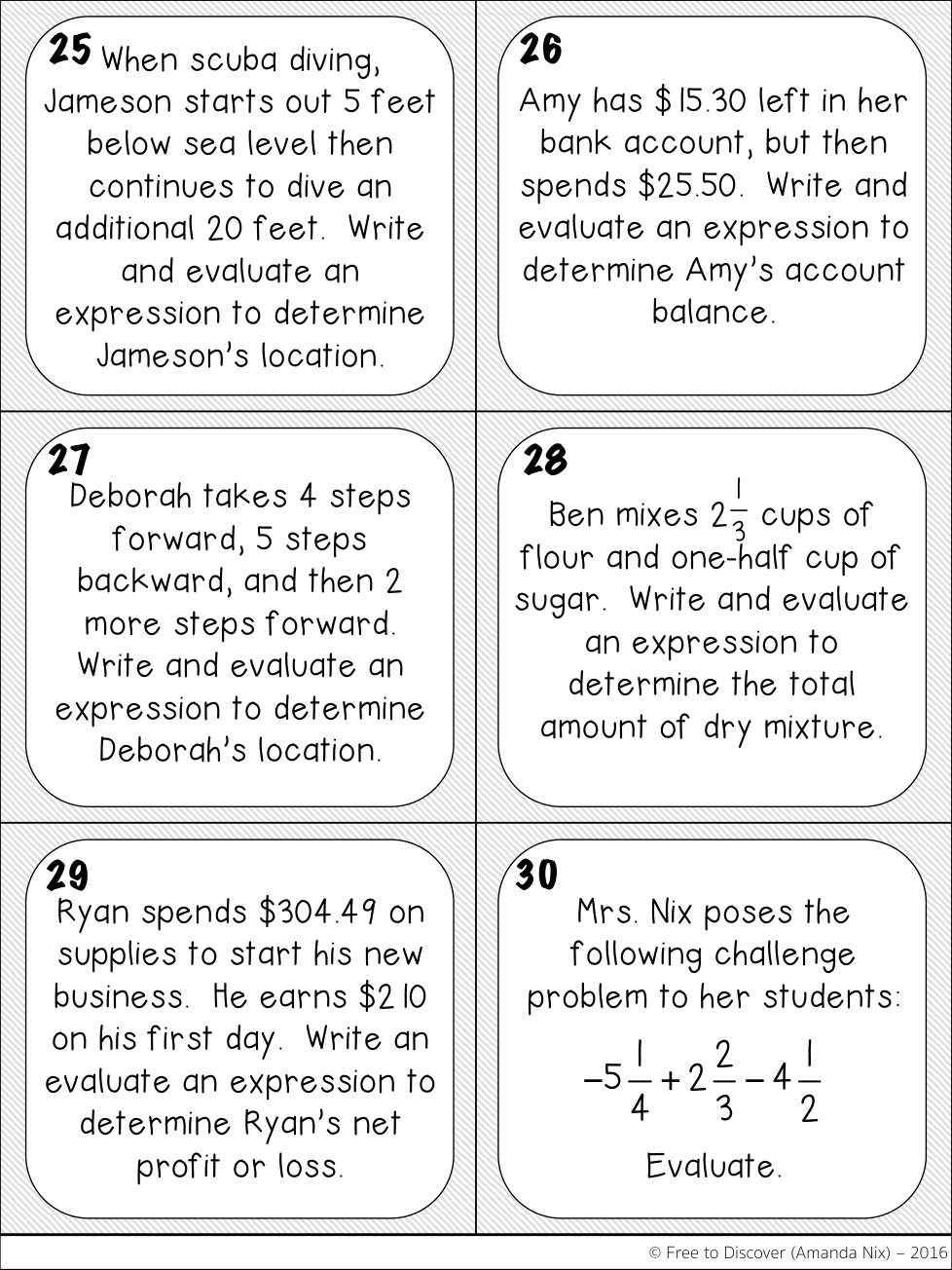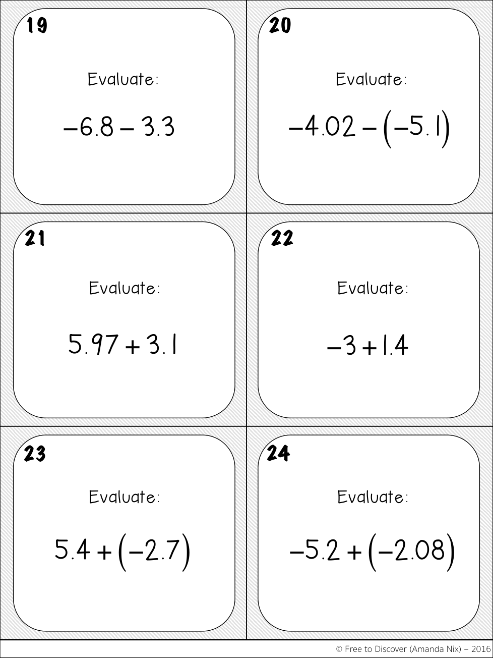 6/11 Adding and Subtracting Rational Numbers Task Cards