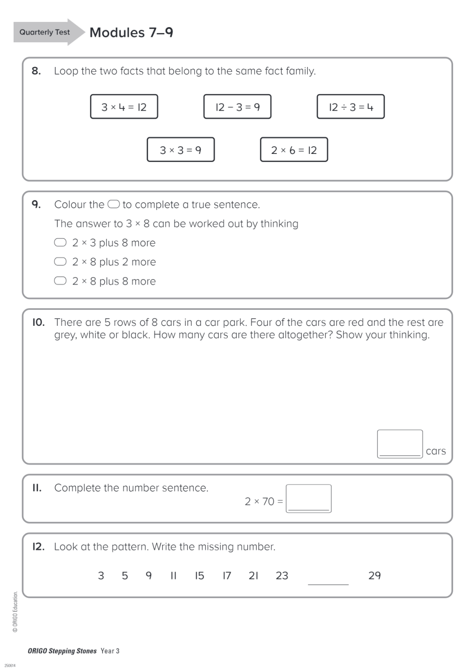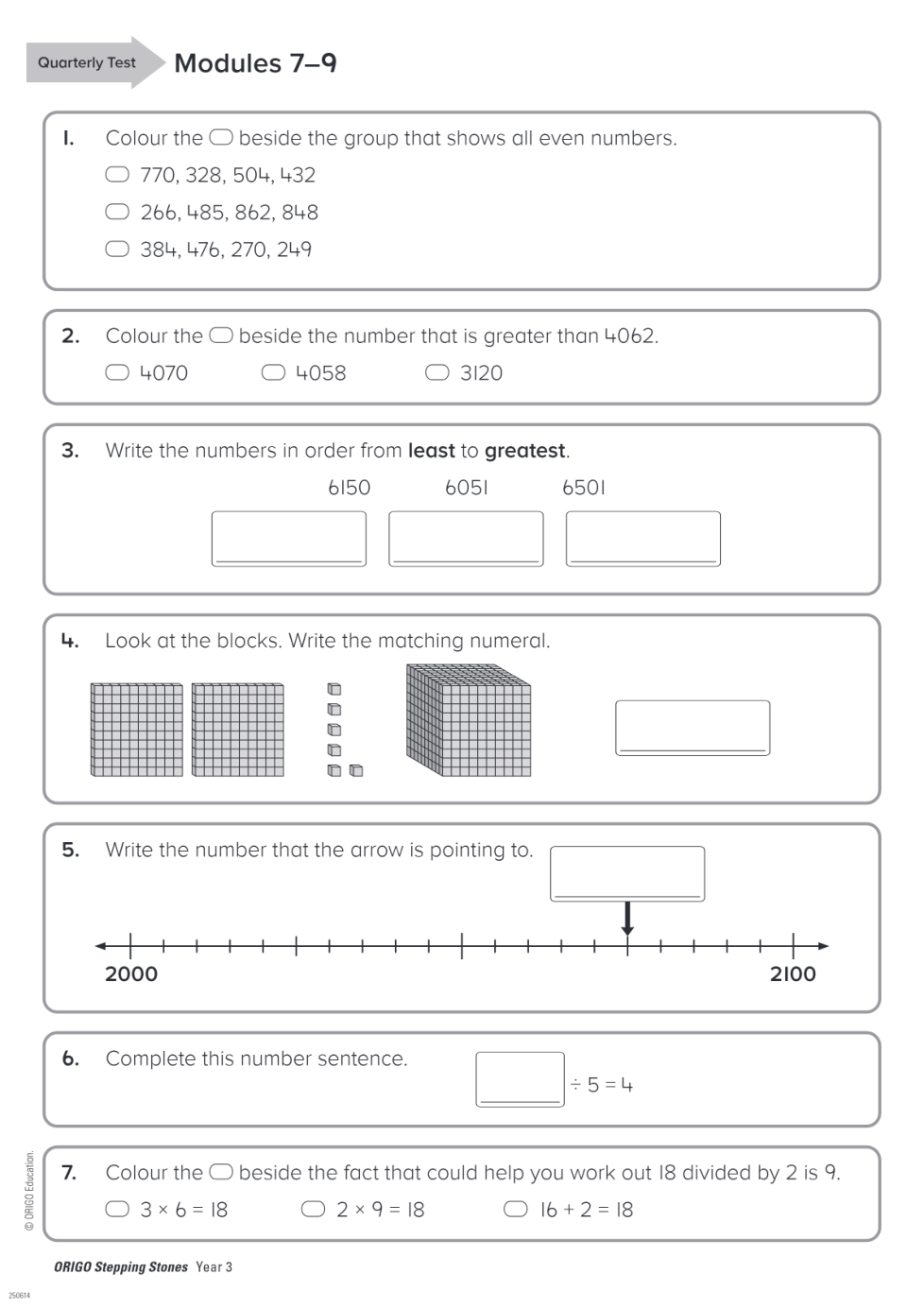 Geraldton PS Year 3 Term 3 Quarterly Test