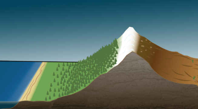 All around the world there are mountain ranges that have a region that is much drier on one side—like the mountain range shown in this diagram.