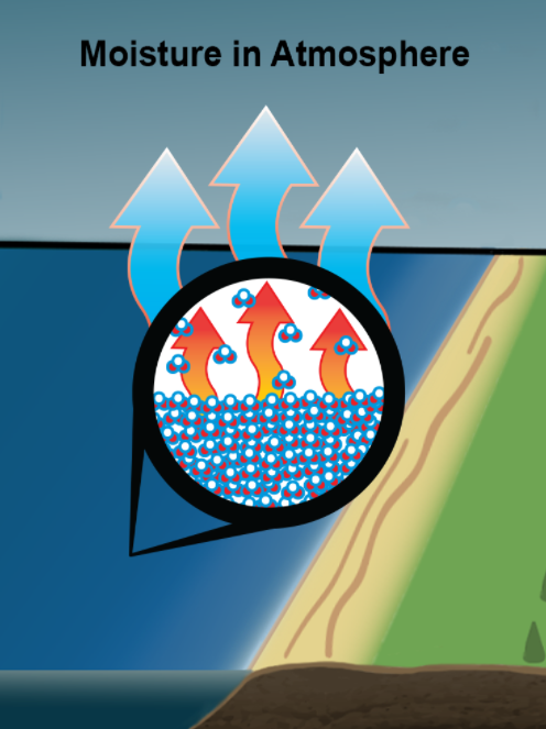 Play the video to see what happens when water from the ocean evaporates into the atmosphere, a process that can be observed by satellite.