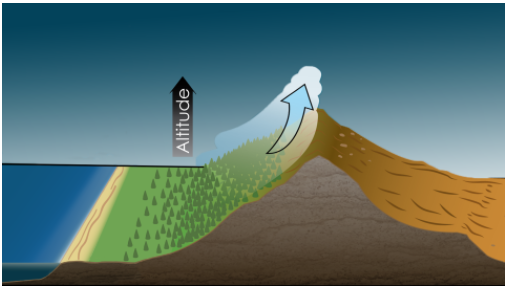 As air carrying moisture moves toward a mountain range, the slope of the mountain range forces the air upward.