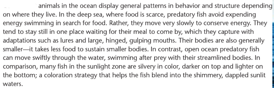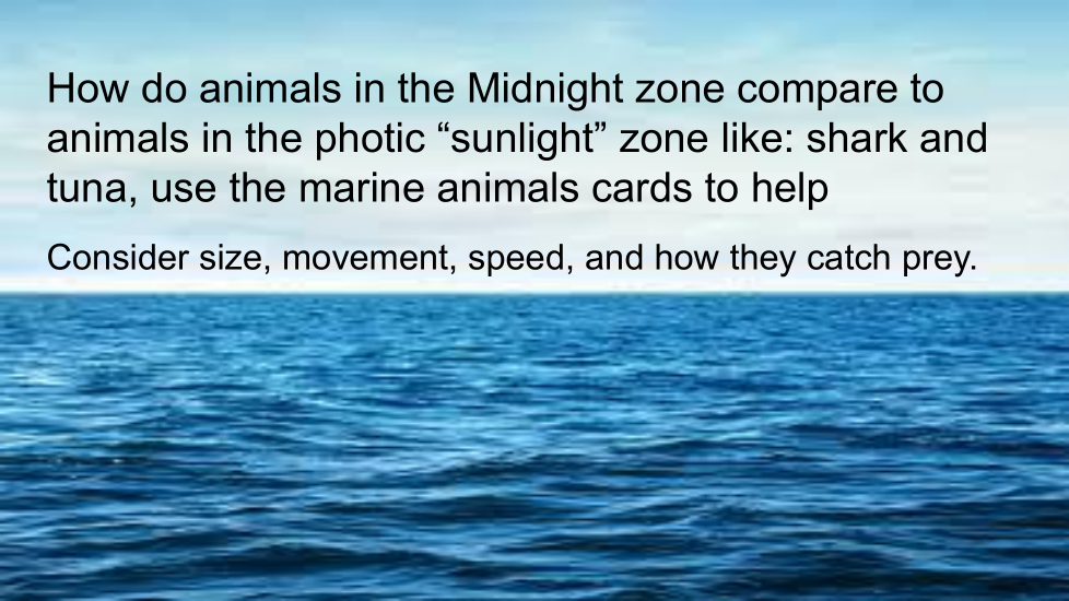 How do animals in the midnight zone compare to animals in the photic "sunlight" zone?Consider size, movement, speed, catching prey