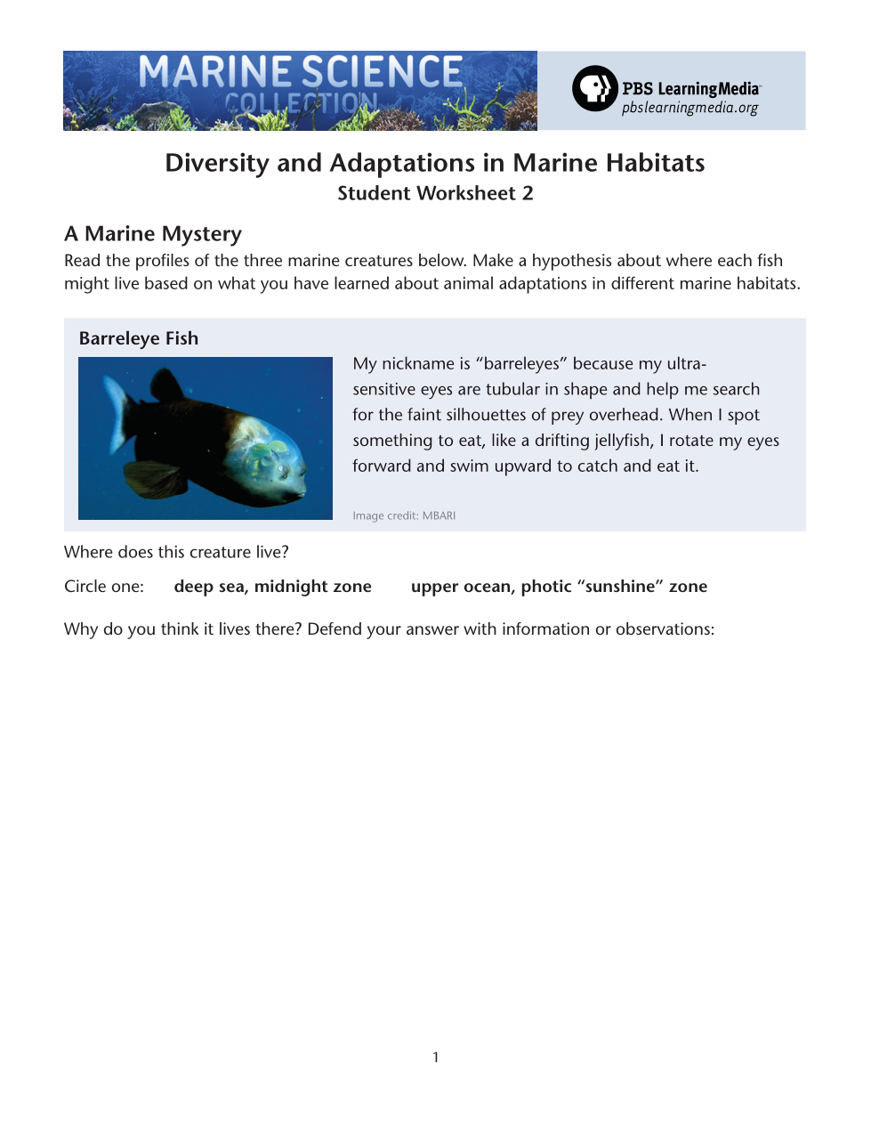 Watch this clip to learn about the Angler Fish: https://rmpbs.pbslearningmedia.org/resource/noaa-interactive-2/anglerfish-ocean-today/List the adaptation and how it helps survival of this marine creature.