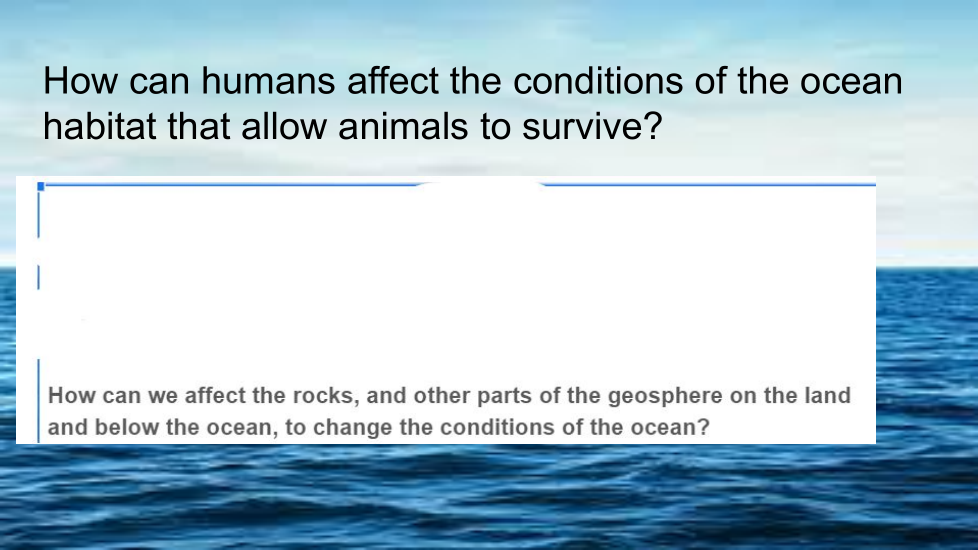 How can we (humans) affect the rocks, and other parts of the geosphere on the land and below the ocean, to change the conditions of the ocean?