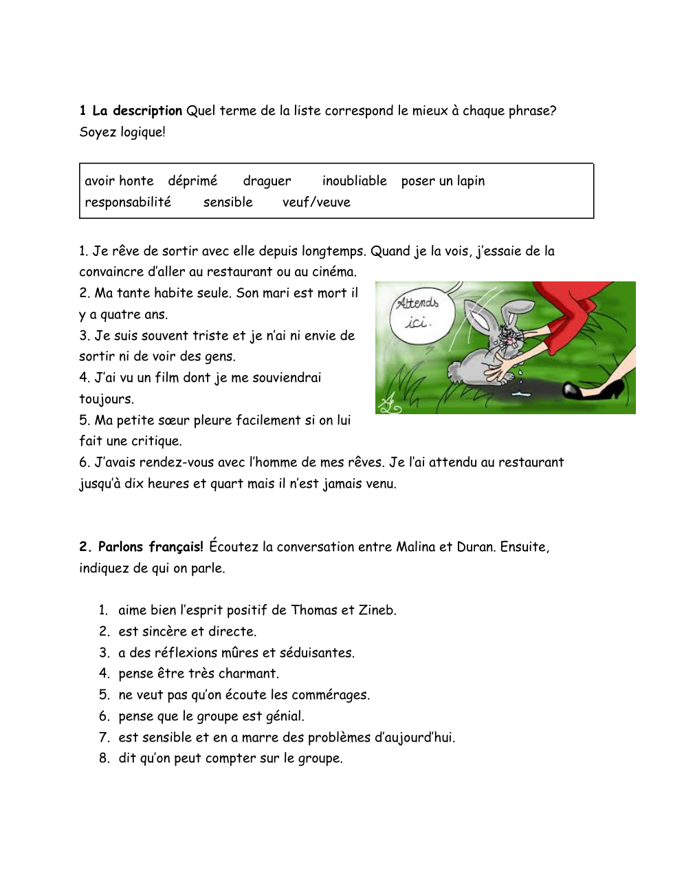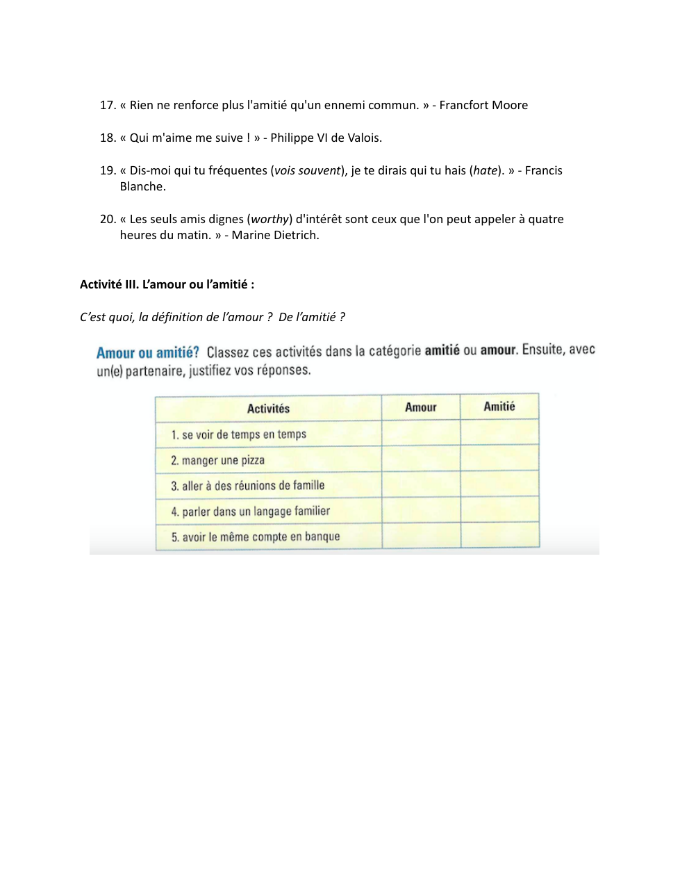 Est-ce que tu écoutes des commérages ? Pourquoi ou pourquoi pas ? Fais-tu des commérages ? Pourquoi ou pourquoi pas ?