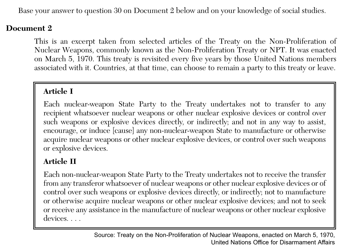 Explain the purpose of the Non-Proliferation Treaty based on this passage.