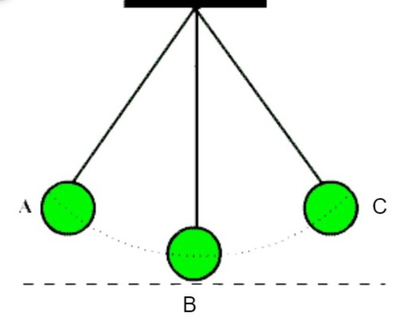 If students released the pendulum at Point A, which point in the pendulum cycle would have the most kinetic energy?