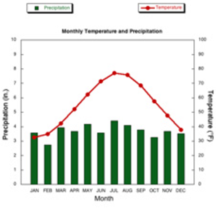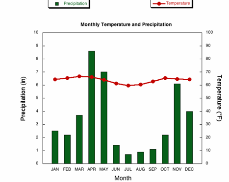 According to the climate data, which location has the most consistent temperature throughout the year?