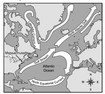 Surface currents in the ocean affect the climate of land areas nearby. Which of the currents most affects the state of Massachusetts and the surrounding areas?