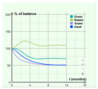 This ecosystem was in equilibrium until year 3. Determine the most likely reason this