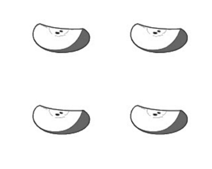 An apple is cut into 4 equal pieces. Glenn eats exactly \frac{3}{4} of the apple. Select the apple pieces Glenn could have eaten.