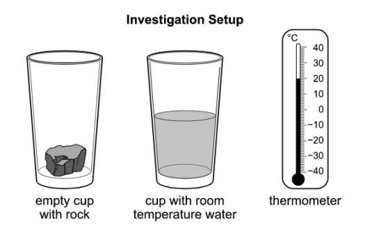 On a hot day, the students place the cup with the rock in a sunny location for one hour. They then pour the room temperature water into the cup with the rock.