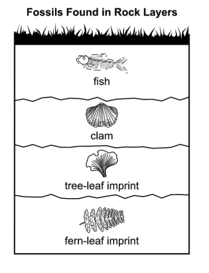 The diagram shows fossils that have been found in different rock layers under a school playground.