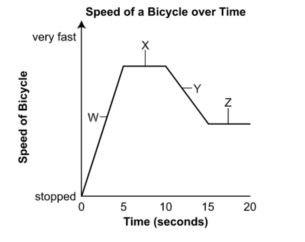 The energy of the bicycle was greatest at time __________ because the speed of the bicycle was __________.